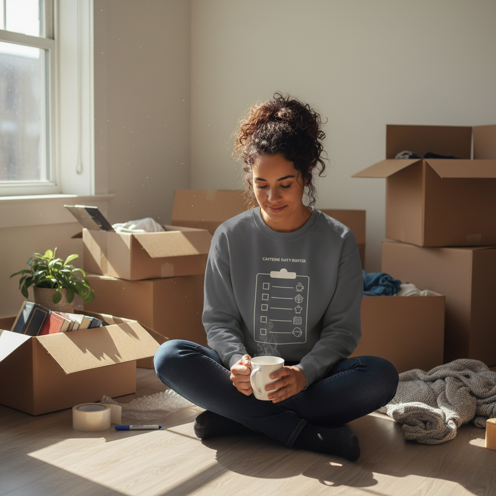 Cozy unisex sweatshirt featuring a minimalist “Caffeine Duty Roster” design, perfect for military spouses juggling deployments, duty days, and daily life. Made from a medium-heavy 50/50 cotton-polyester blend with a classic fit and crew neckline for a comfy wearing experience. Ideal for those managing chaos and running on caffeine.